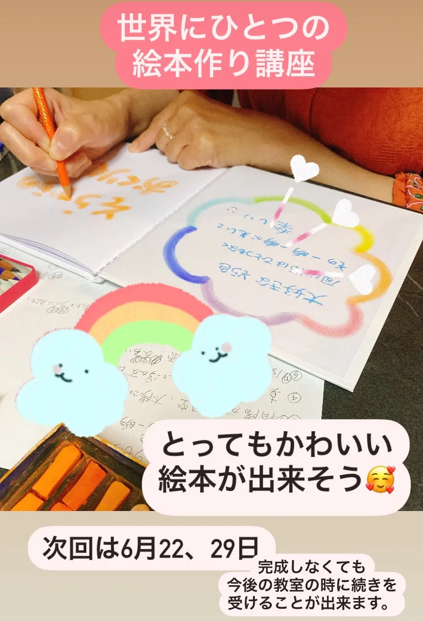 世界にひとつの絵本講座は2回なんですが出来なかったら次の講座の時に一回2,000円で受講可能です。