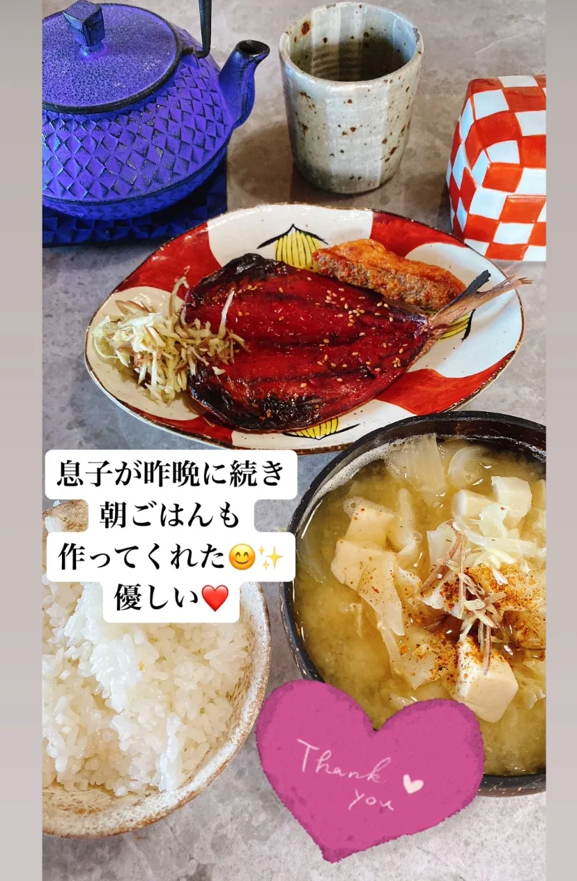 夜ご飯も朝ご飯も作ってくれた。優しい〜♪